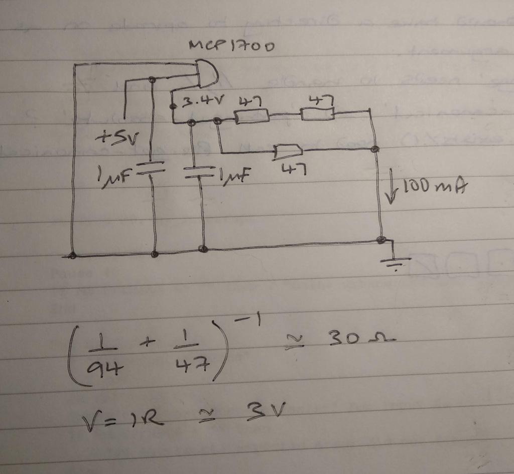 Mixtel90 said  The MCP1700 is rated at 250mA for voltages over 2.5V, but we don't need that much.