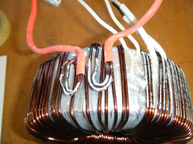 This thing has 65 turns (2 in hand of 2.3mm dia wire) for the primary.