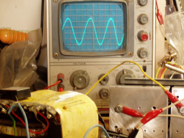 I had an oscilloscope probe connected to the transformer secondary and another probe to the output of the inverter.